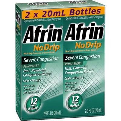 - CERTAIN CONTENT 2 Pack Combo Afrin No Drip Severe Congestion 12 Hours Relief Nasal Decongestant Bottle of 2/3 Oz THAT APPEARS ON THIS Â COMES FROM AMAZON EU. THIS CONTENT IS PROVIDED AND IS SUBJECT TO CHANGE OR REMOVAL AT ANY TIME.