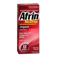 - CERTAIN CONTENT Afrin Afrin No Drip Nasal Decongestant 12 Hours Relief Pump Mist, 0.5 oz (Pack of 3) THAT APPEARS ON THIS Â COMES FROM AMAZON EU. THIS CONTENT IS PROVIDED AND IS SUBJECT TO CHANGE OR REMOVAL AT ANY TIME.