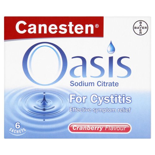 - CERTAIN CONTENT Canesten Oasis for Cystitis Cranberry Flavour 6 Sachets THAT APPEARS ON THIS Â COMES FROM AMAZON EU. THIS CONTENT IS PROVIDED AND IS SUBJECT TO CHANGE OR REMOVAL AT ANY TIME.